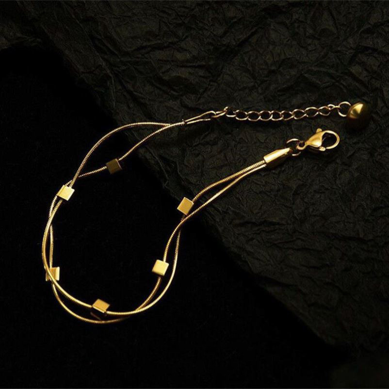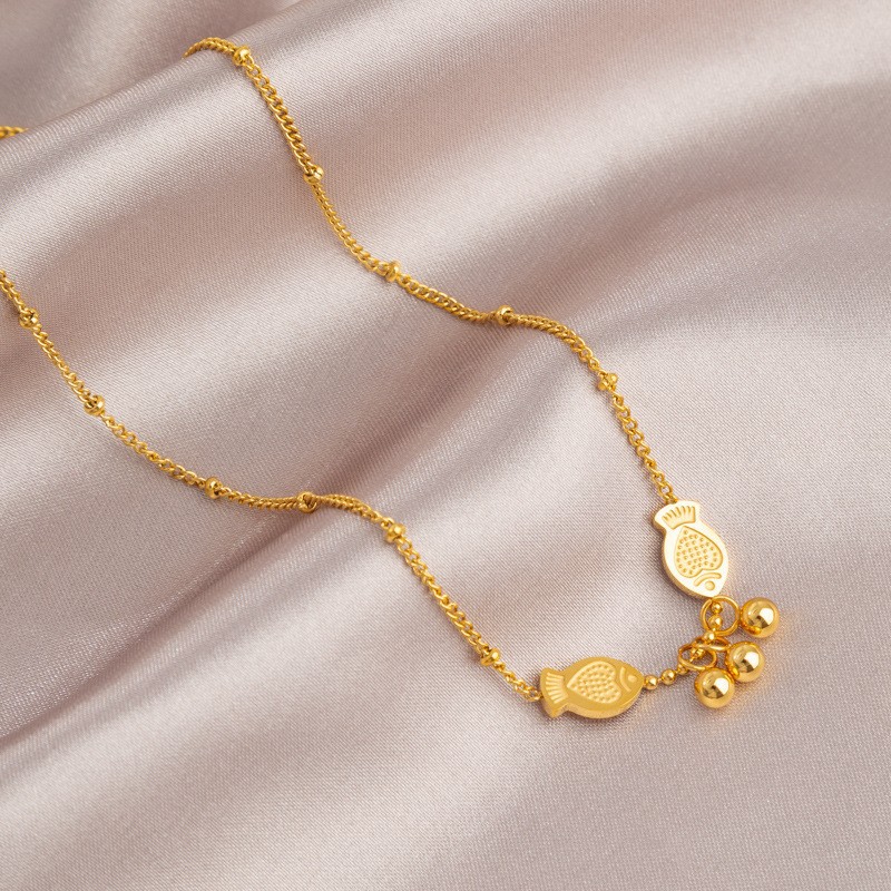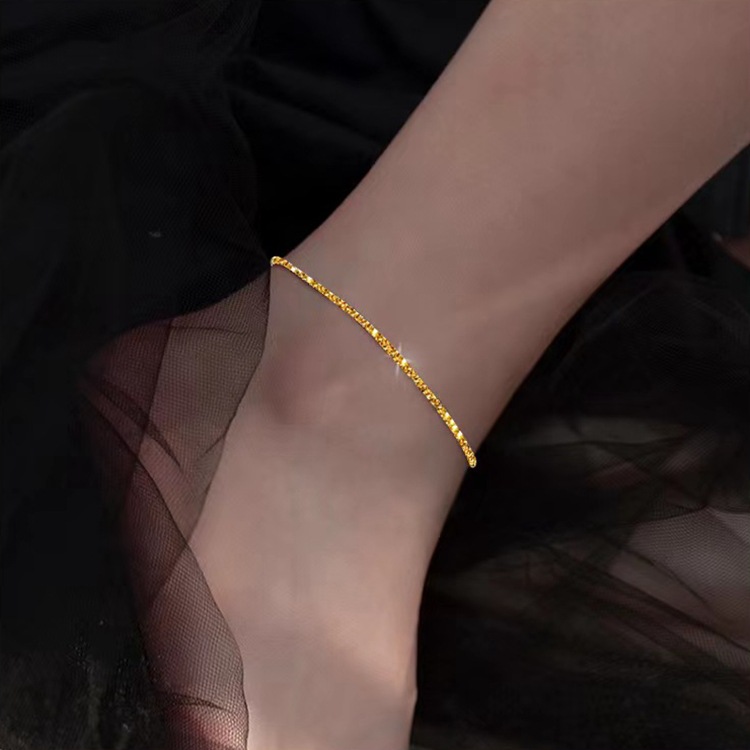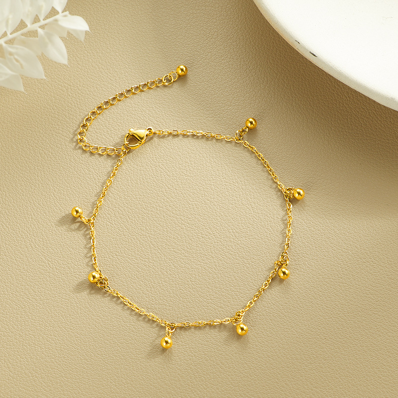 唇链钢珠双球脚链,304不锈钢,18K真金