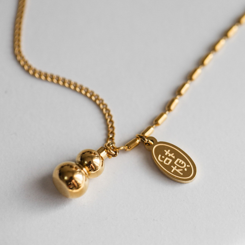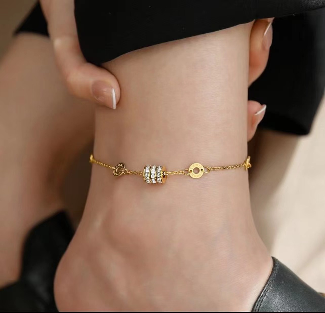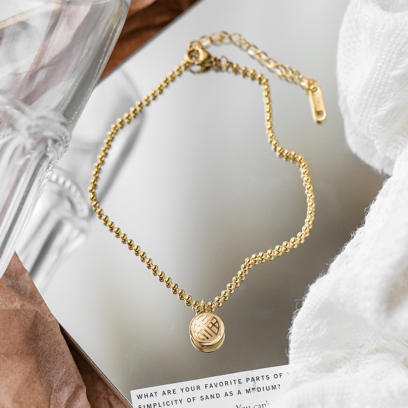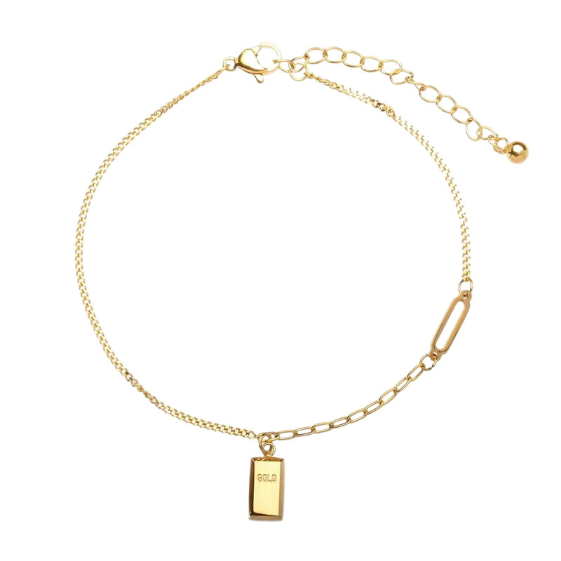 别针链Good luck方牌脚链,304不锈钢,18K真金