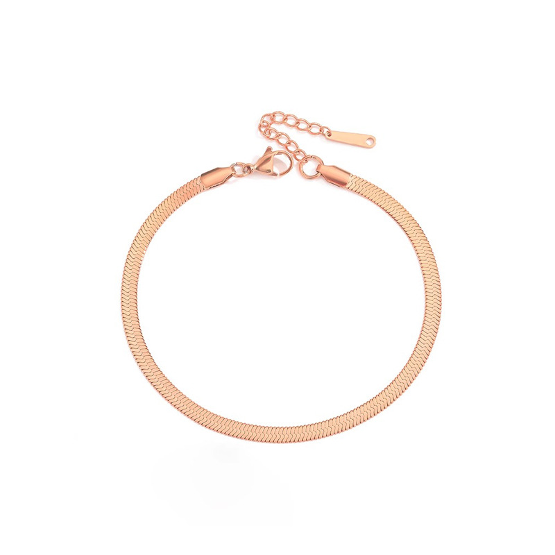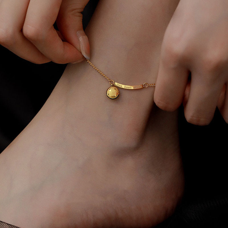 侧身链弯条笑脸脚链,304不锈钢,18K真金