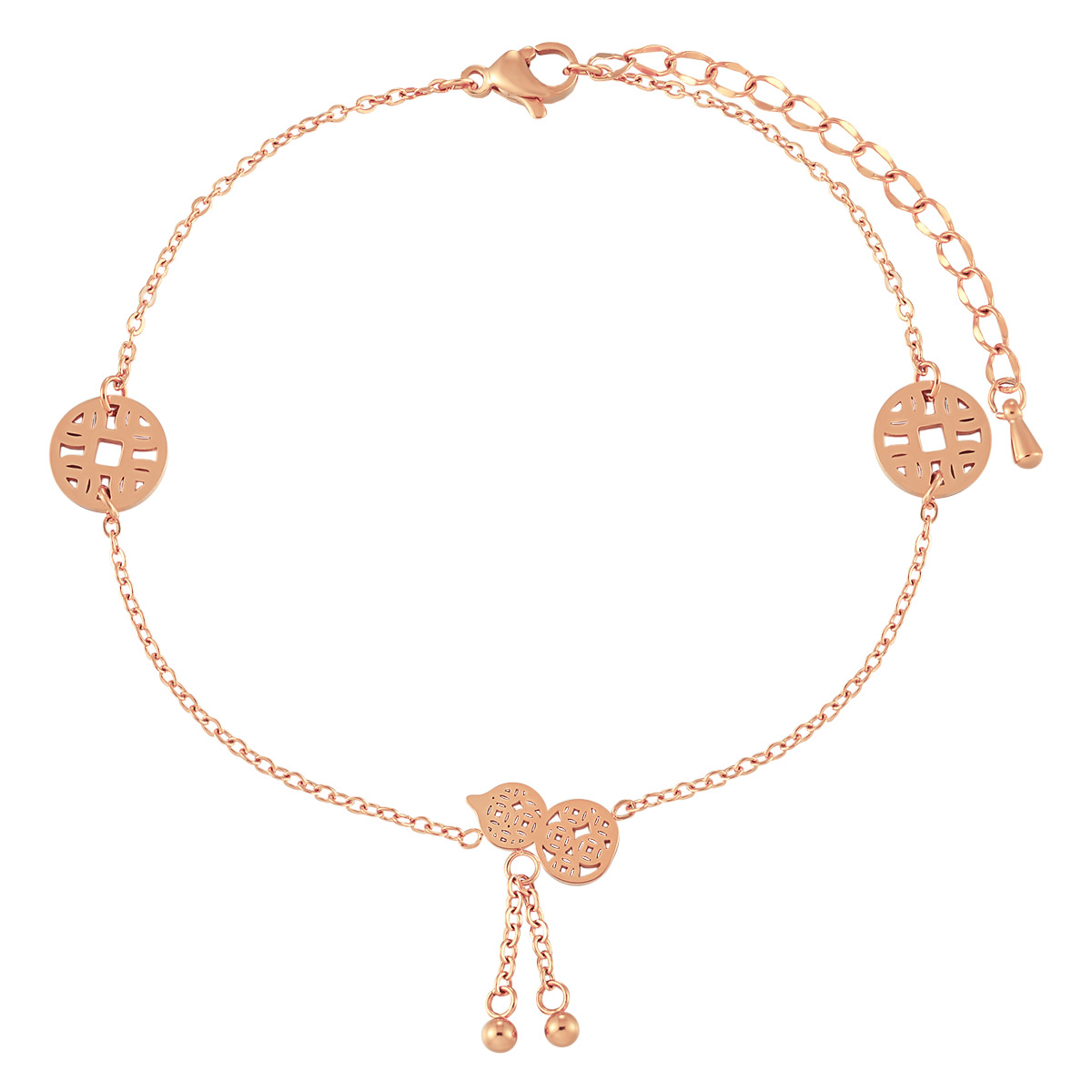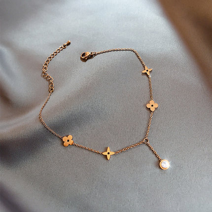 四个四叶草一个石托流苏脚链,304不锈钢,玫瑰金