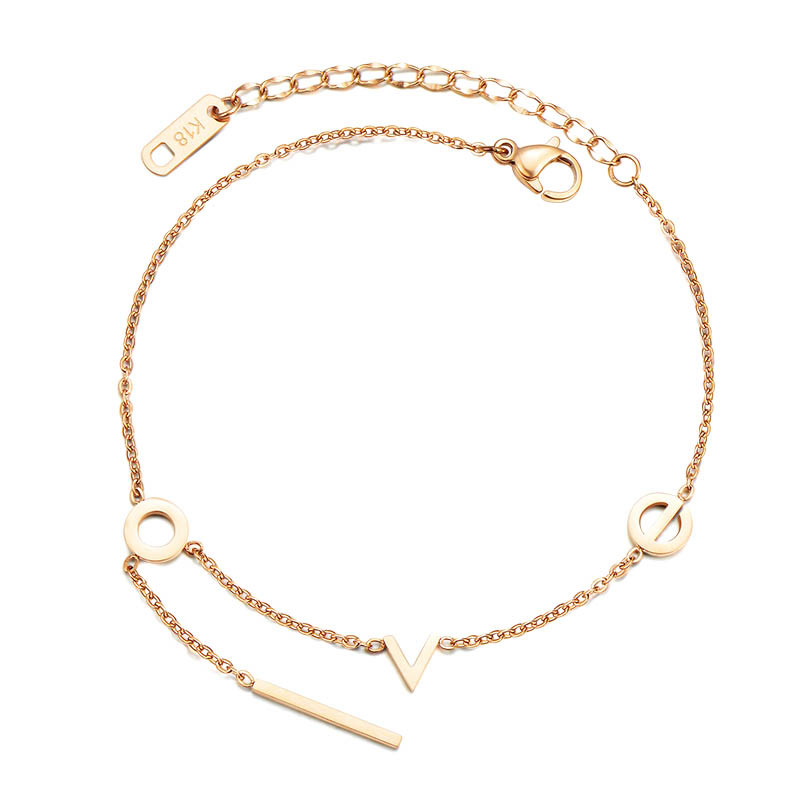 双层刀片链字母桃心脚链,304不锈钢,18K真金