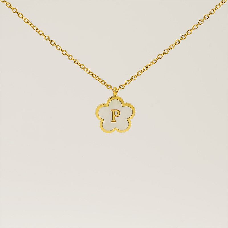 五叶草字母P项链,304不锈钢,18K真金