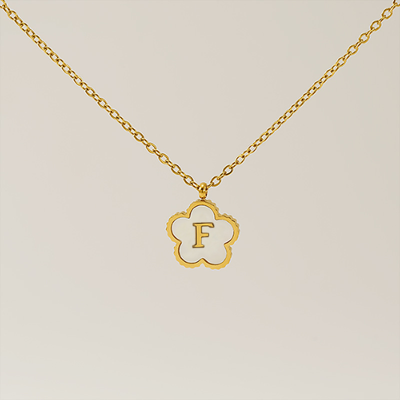 五叶草字母F项链,304不锈钢,18K真金