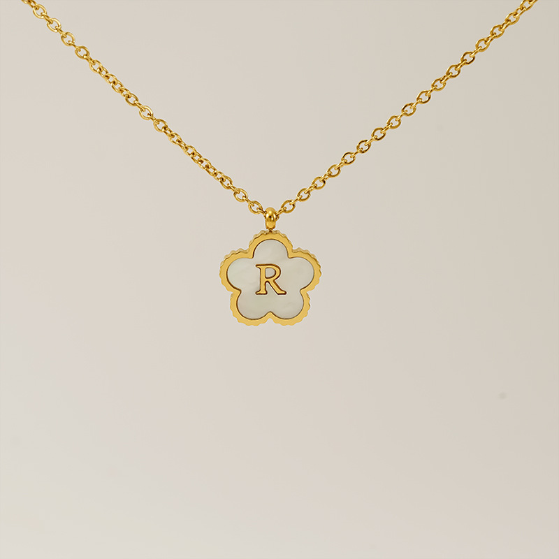 五叶草字母R项链,304不锈钢,18K真金