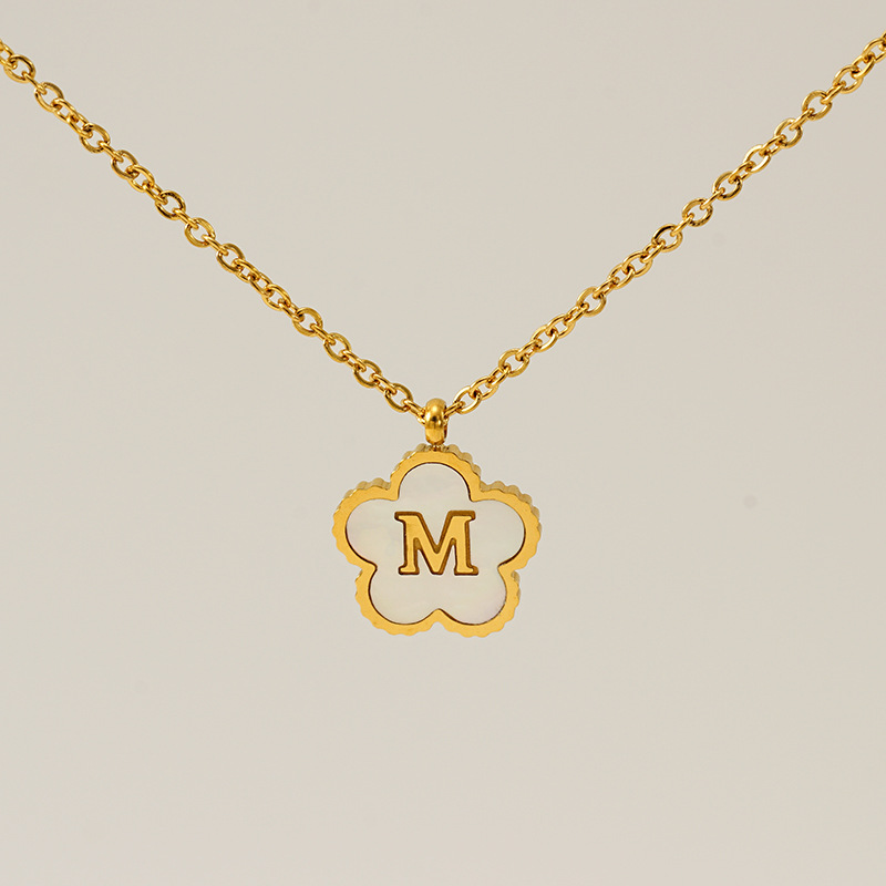 五叶草字母M项链,304不锈钢,18K真金