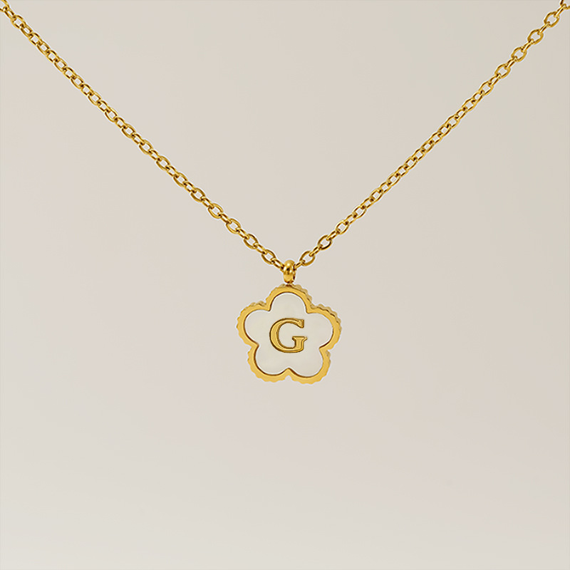 五叶草字母G项链,304不锈钢,18K真金