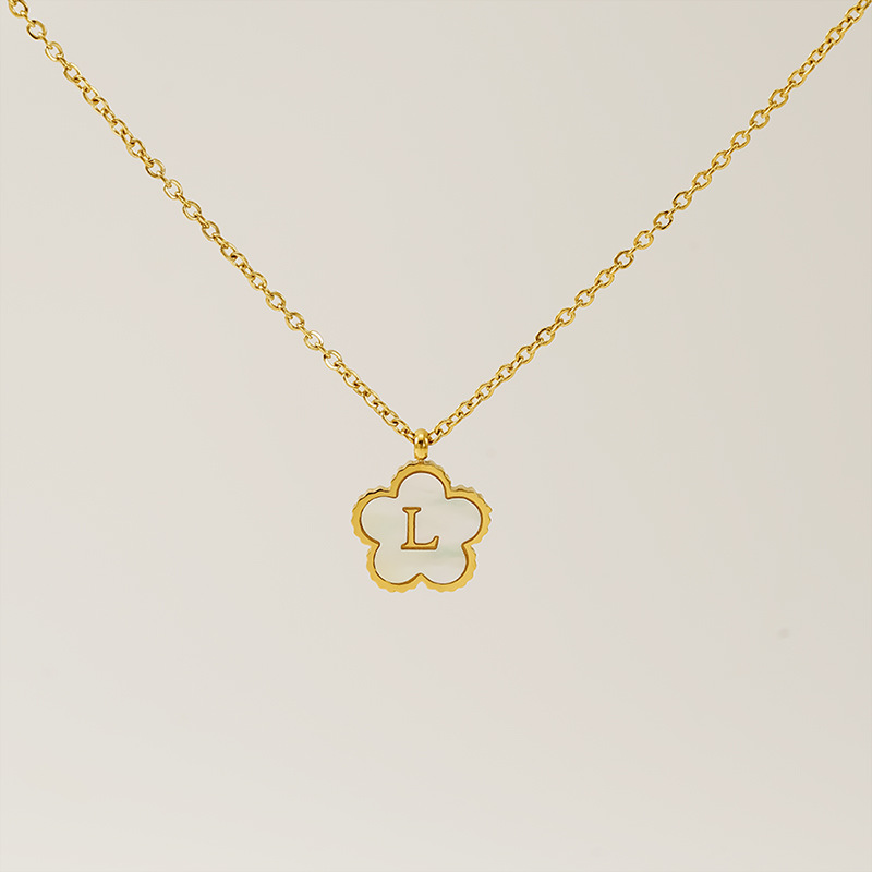 五叶草字母L项链,304不锈钢,18K真金