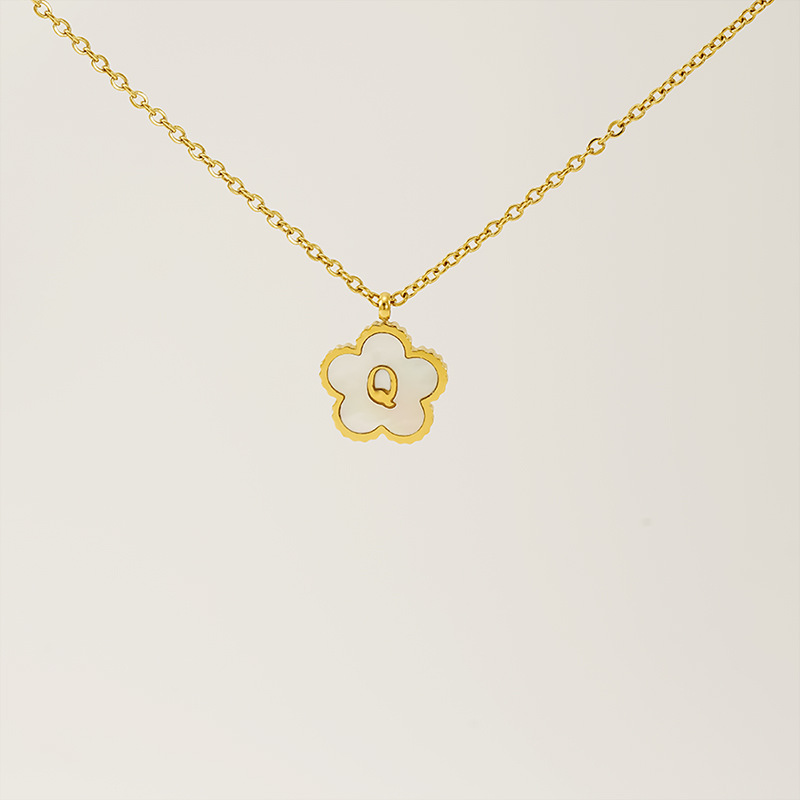 五叶草字母Q项链,304不锈钢,18K真金