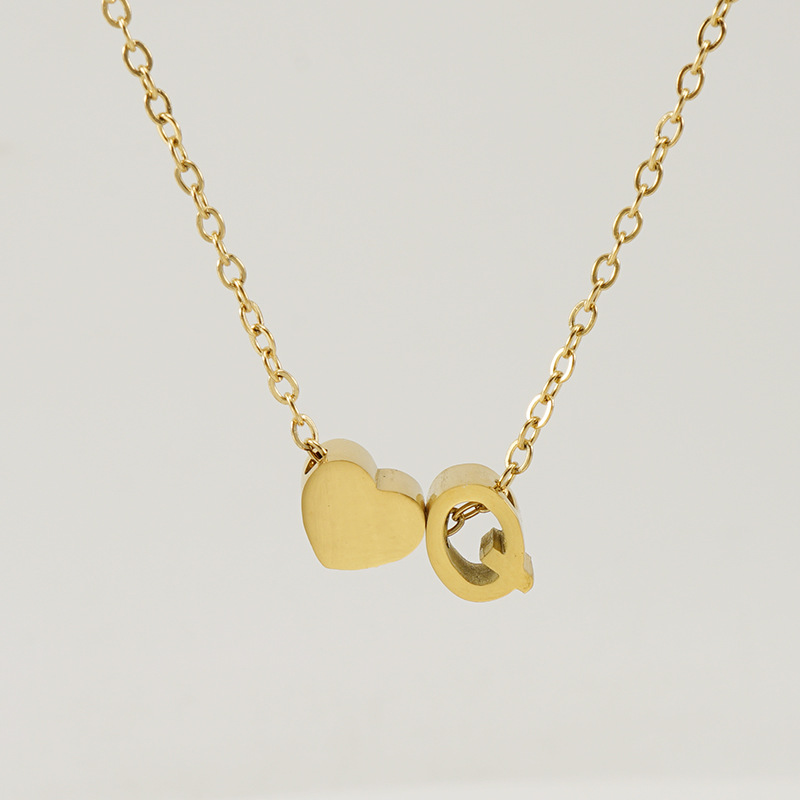爱心字母Q项链,304不锈钢,18K真金