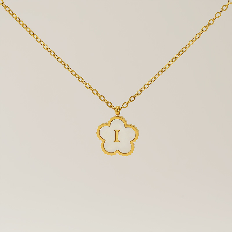 五叶草字母i项链,304不锈钢,18K真金