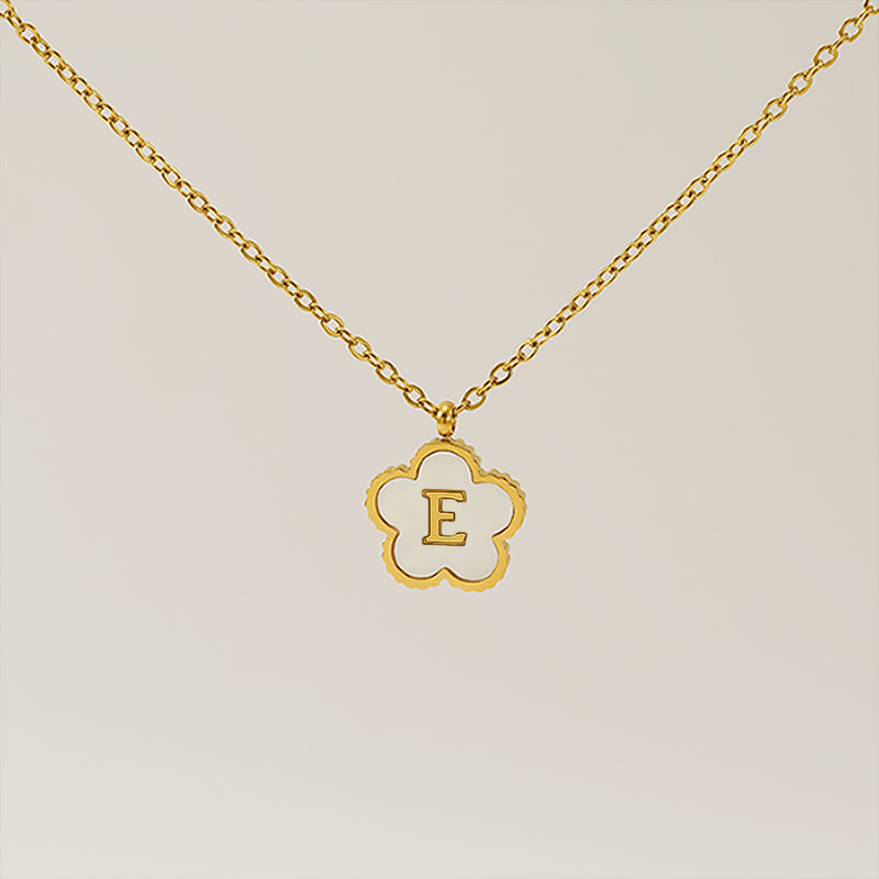 五叶草字母E项链,304不锈钢,18K真金