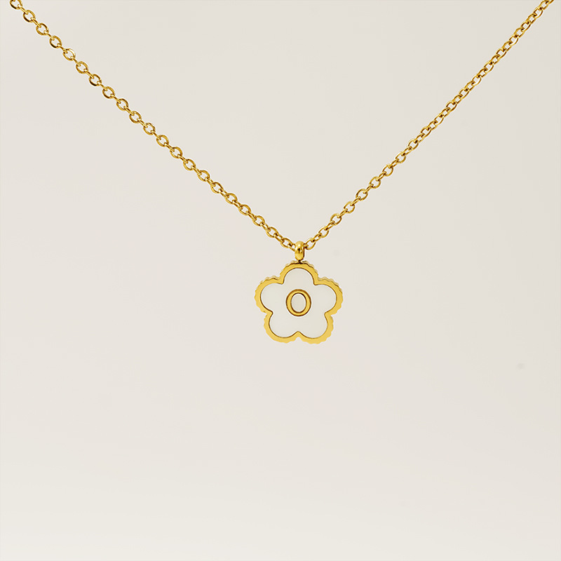 五叶草字母O项链,304不锈钢,18K真金