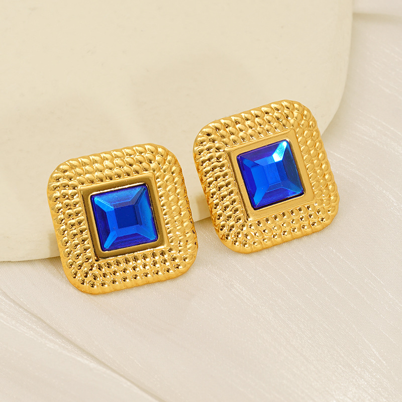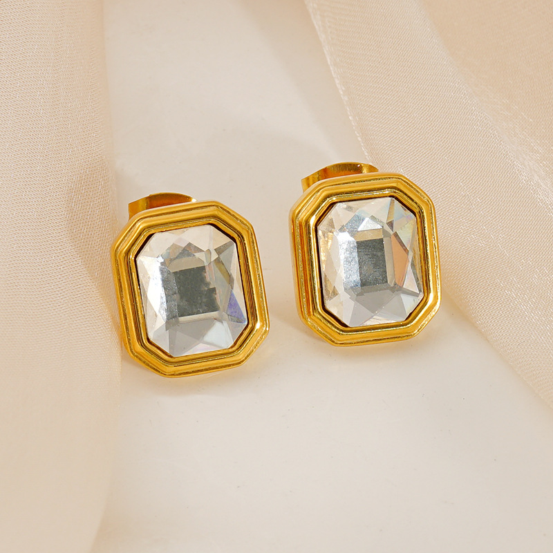菱纹耳钉,304不锈钢,18K真金 水钻-国产石:黑色