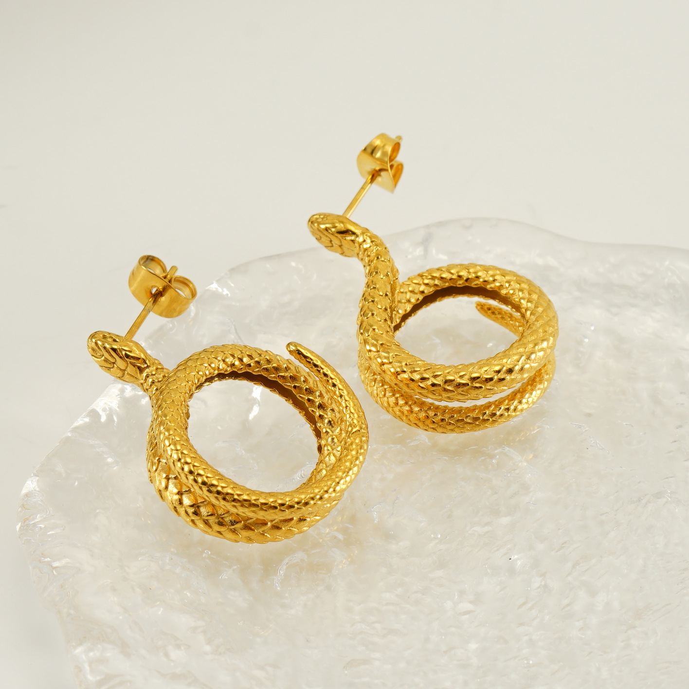 蛇形耳环,304不锈钢,18K真金