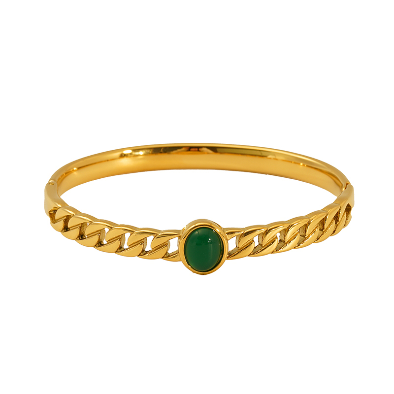 孔雀石恶魔之眼开口手镯,304不锈钢,18K真金