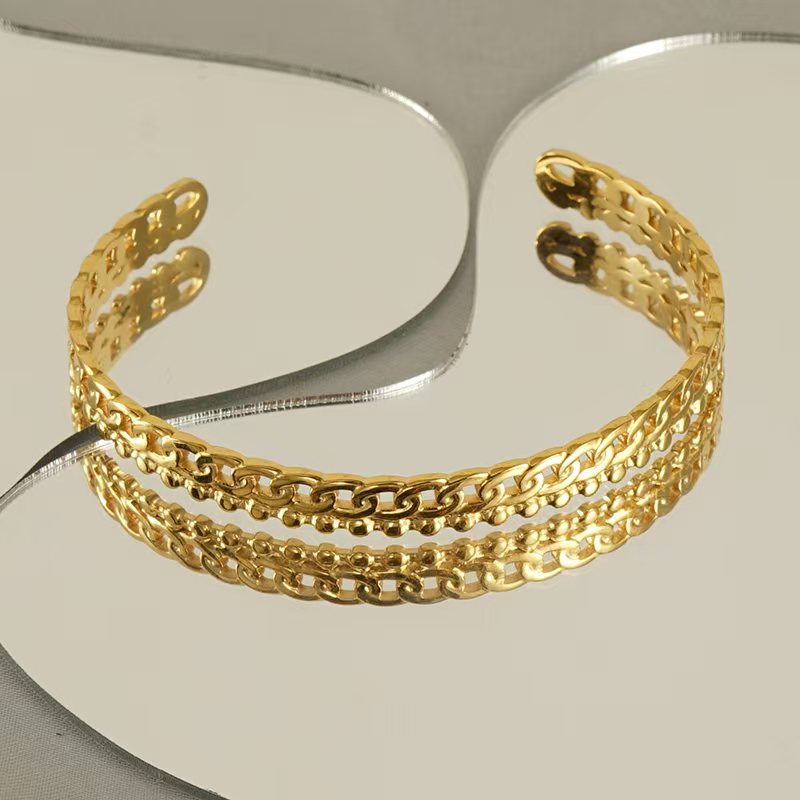 跨境欧美ins不锈钢电镀18K开口麻花手饰女小众可调节手镯饰品,304不锈钢,18K真金