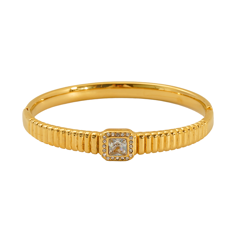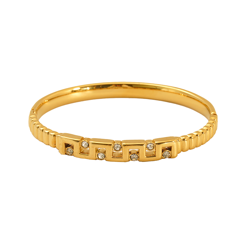 跨境欧美爆款镀18k金不掉色钛钢手镯不锈钢镶锆石卡扣手镯,18K真金