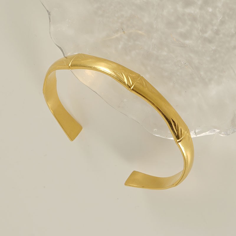 欧美风复古钛钢开口手镯女款气质个性18K镀金C形手环潮流手饰,304不锈钢,18K真金