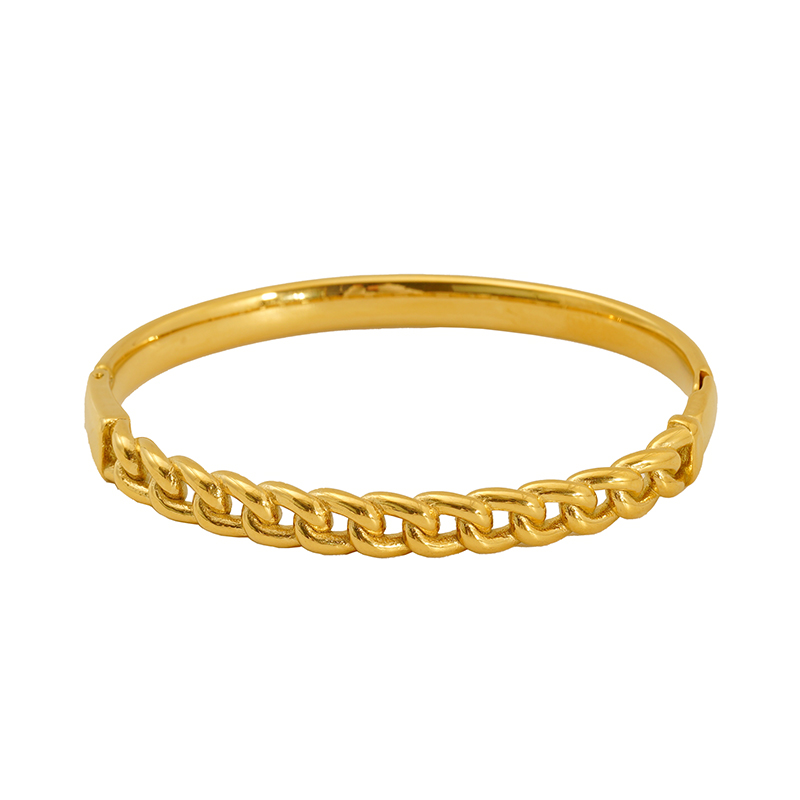 欧美跨境镀18K金卡扣钛钢手镯不掉色时尚简约百搭不锈钢手镯,304不锈钢,18K真金